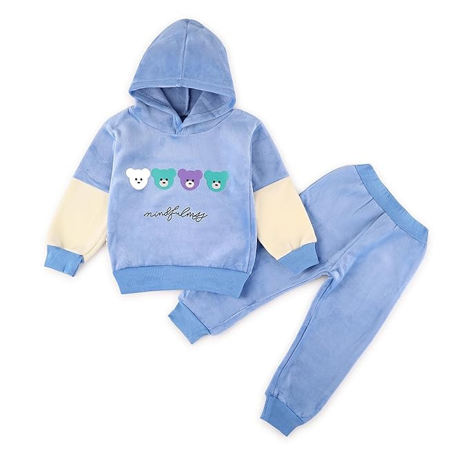 Kid's Warm Cartoon Colorblock Velvet Fleece Sweatshirt Hoodie Jogger Pant Winter Clothing Set for Boys & Girls